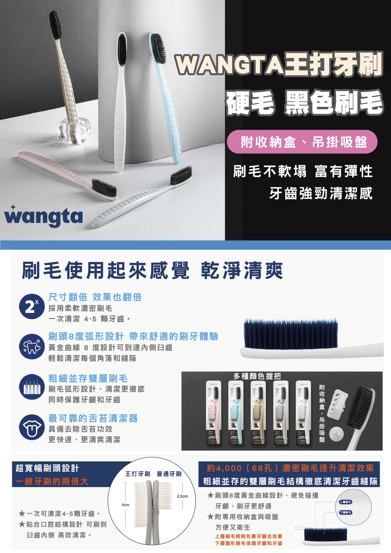 韓國WANGTA王打牙刷-硬毛(黑毛) 8809030528889