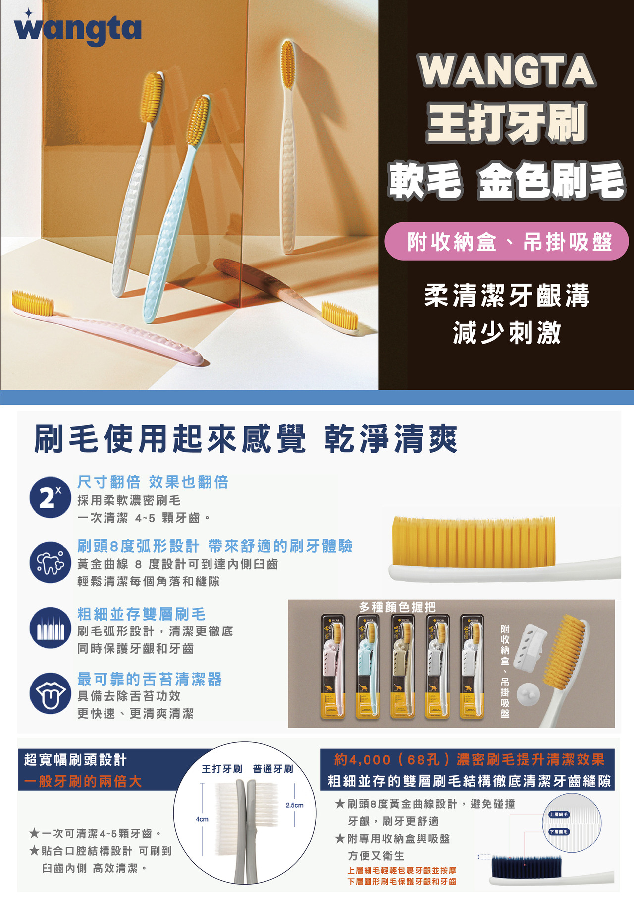 韓國WANGTA王打牙刷-軟毛(金毛) 8809030525888